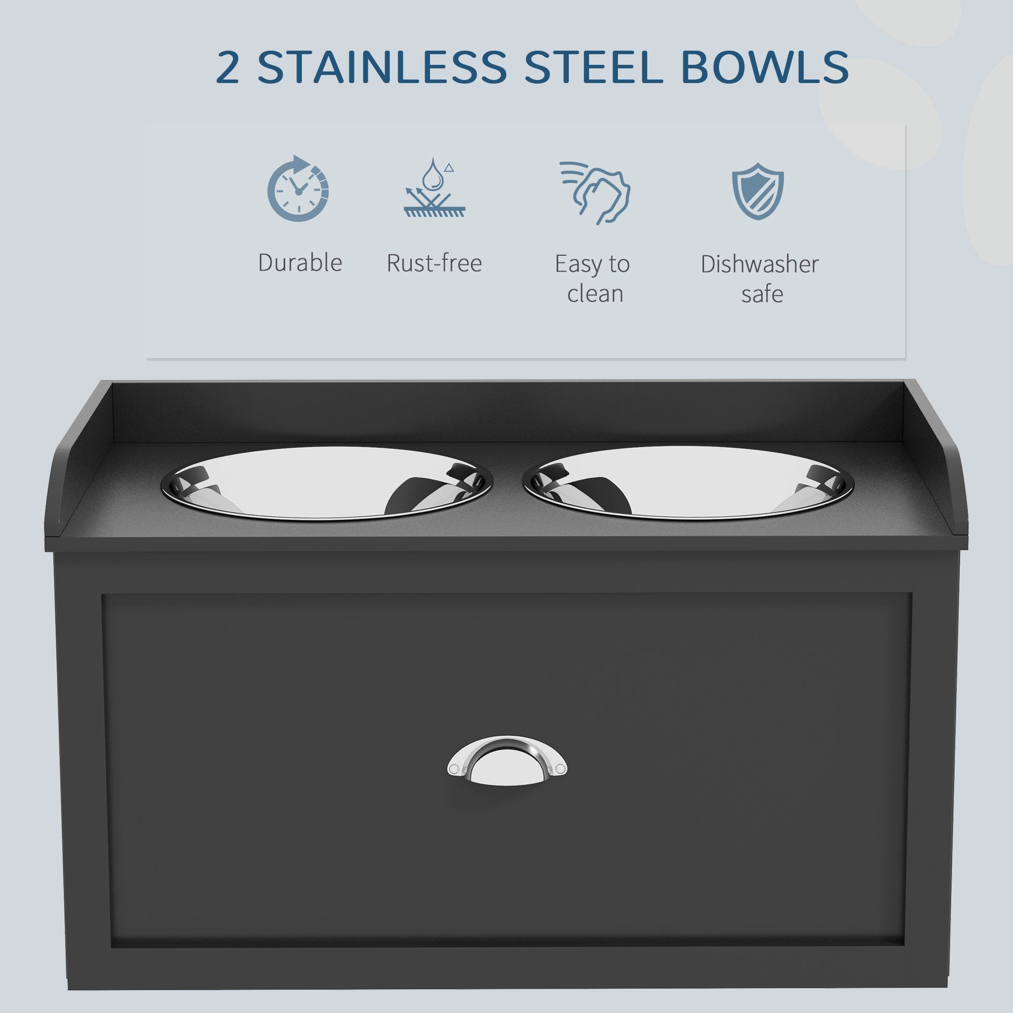 Pet Feeding Station Pet Dish Bowl Set with Storage, 2 Elevated Dog Bowls for Large Sized Dogs, Black
