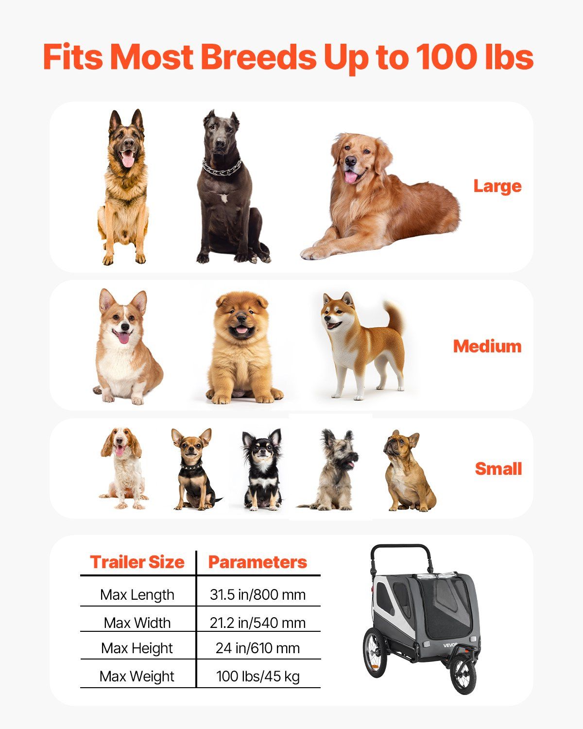 Home > VEVOR Dog Bike Trailer, Supports up to 100 lbs, 2-in-1 Pet Stroller Cart Bicycle Carrier for Small & Large Dogs
