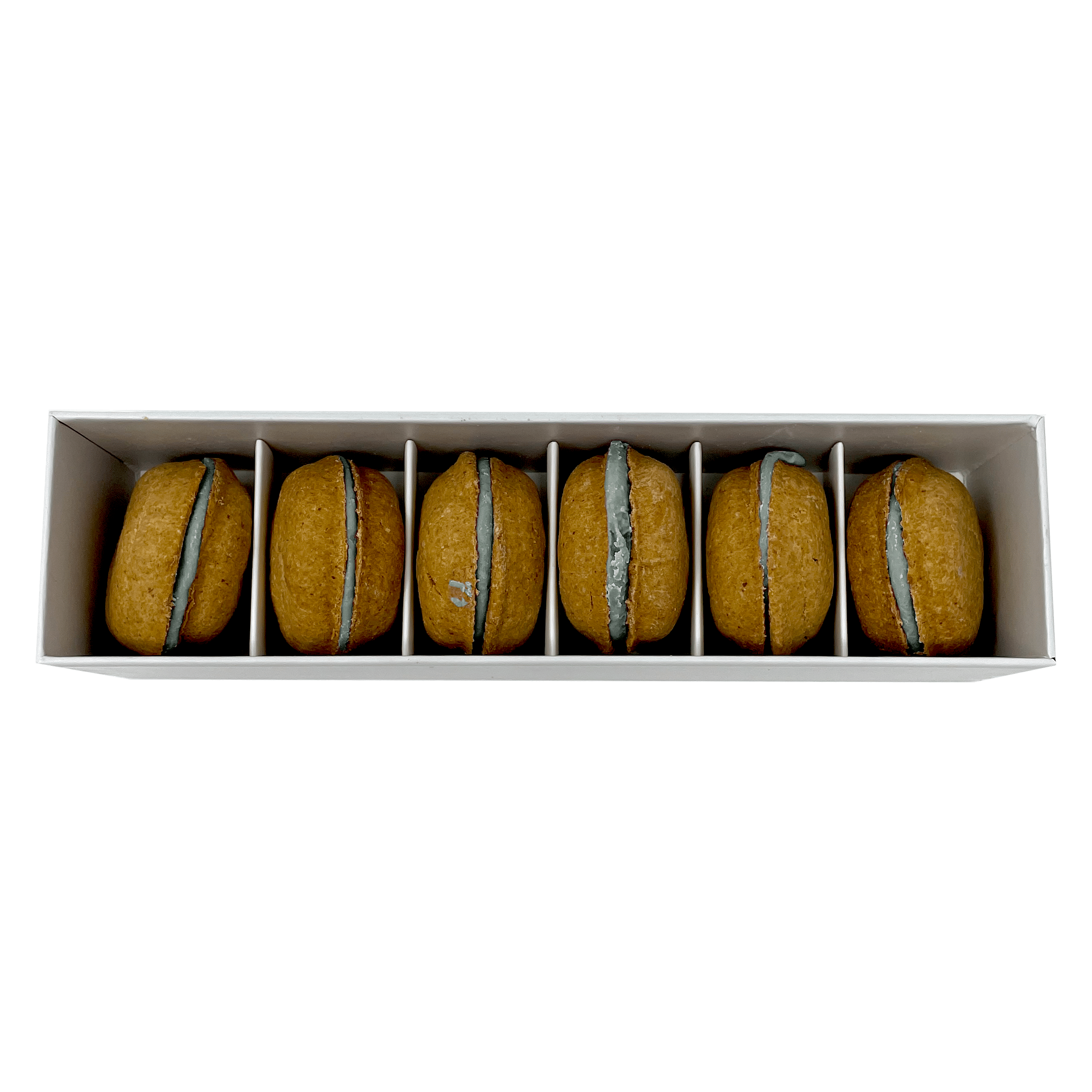 Dog Macarons - Count of 6 (Dog Treats | Dog Gifts)This box of our premium macaron treats features: - Box of 6 dog macarons- Handmade with premium human-grade ingredients in the USA- 100% natural; corn-free; wheat-free ingredients- No artificial coloring or preservatives- Hard treat designed for a long-lasting chew- Shelf life of 12+ months | No need for refrigerationBase Recipe Ingredients: Oat Flour; Honey; Coconut Oil; All-Natural Flavored Yogurt FillingFeeding Instructions: Our treats are hard; designed for a long-lasting chew. For elderly or small dogs, we recommend breaking the treat into smaller pieces (by twisting both sides).